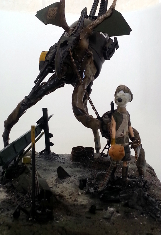 I wanted to create a scene of a slice of emptiness. Of a boy searching for scraps as he leads his hulking companion through a devastated world.